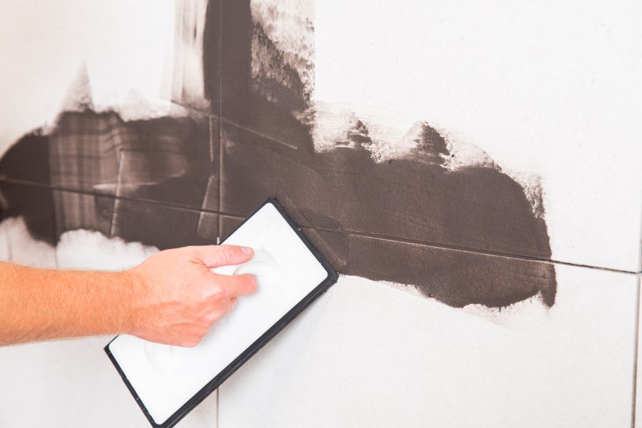 Foto: Spárování pomocí spárovací hmoty Baumacol PremiumFuge, zatlačenou diagonálně do spár pomocí gumové stěrky.