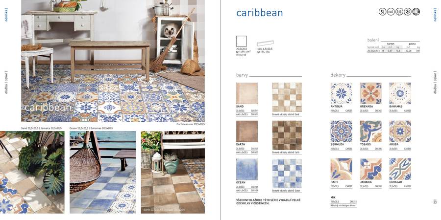 Milovníci retro stylu si jistě přijdou na své v případě dlažby Caribbean. Dlaždice ve formátu 20,5x20,5 cm připomínající podlahy ve starobylých domech v kombinaci s barevnými dekory vypadají prostě úžasně.