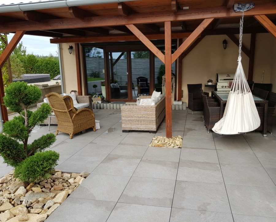 Základem každé terasy je kvalitní podlaha. Mezi nejodolnější, a přitom designově působivá řešení patří jednoznačně keramická dlažba. V tloušťce 2 cm ji lze přitom položit hned třemi různými způsoby – do štěrku, na terče nebo do trávy. „Díky variabilitě venkovních dlažeb tloušťky 2cm je možné pokládku přizpůsobit podkladu. Pokud máte pro terasu již připravený betonový podklad, je nejlepší položit dlažbu na terče. Pokud upřednostňujete menší stavební úpravy, je možné dlažbu položit jednoduše do trávy. Ideálním kompromisem je pak pokládka do štěrku. Zde není nutné vytvářet betonovou desku, stačí štěrkové lože, které zajistí i perfektní odtok vody,“ popisuje jednatel firmy M.B.KERAMIKA Martin Bezděk.